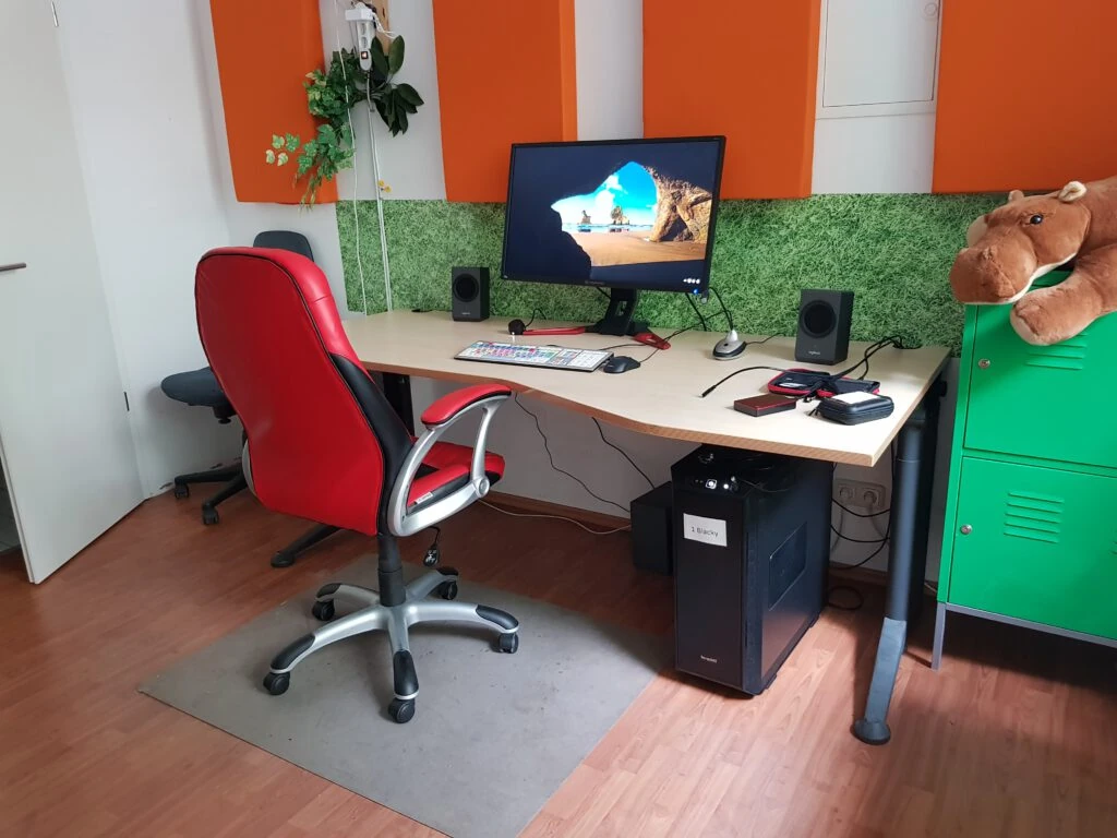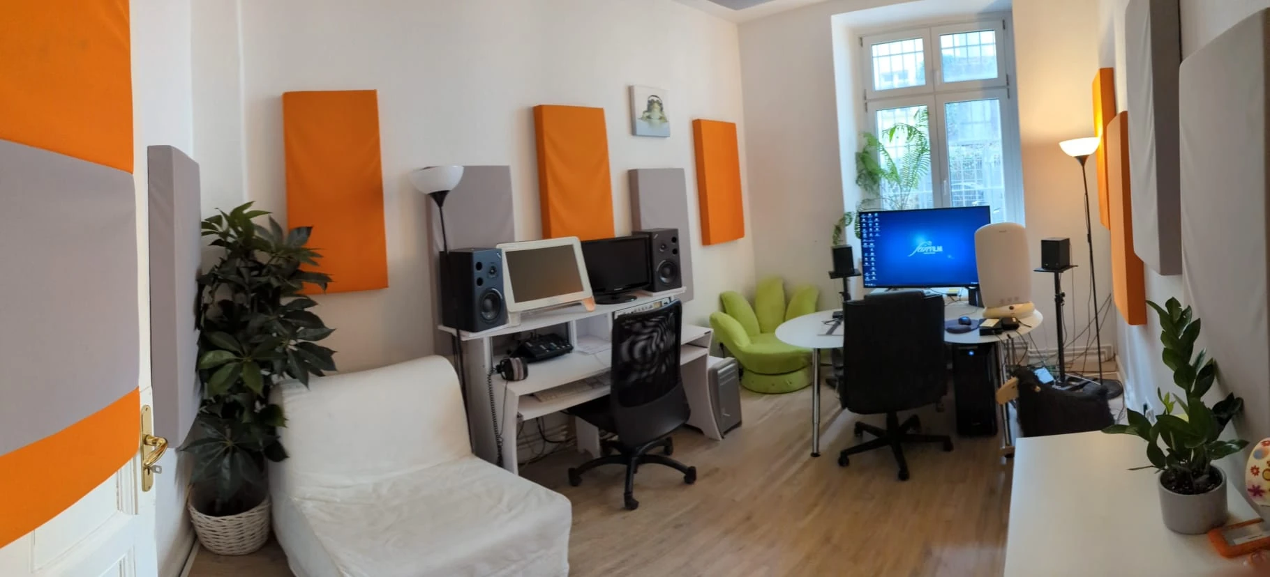 • optional Nutzung der Sprachkabine für Vertonung (gegen Aufpreis und Voranmeldung) mit Protools, Mikro Großmembranmikrofon und Verstärker SPL
